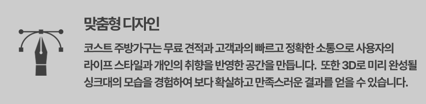 코스트 주방가구는 라이프 스타일과 개인의 취향을 반영한 나만의 공간을 만들어 내기 위해 노력합니다.